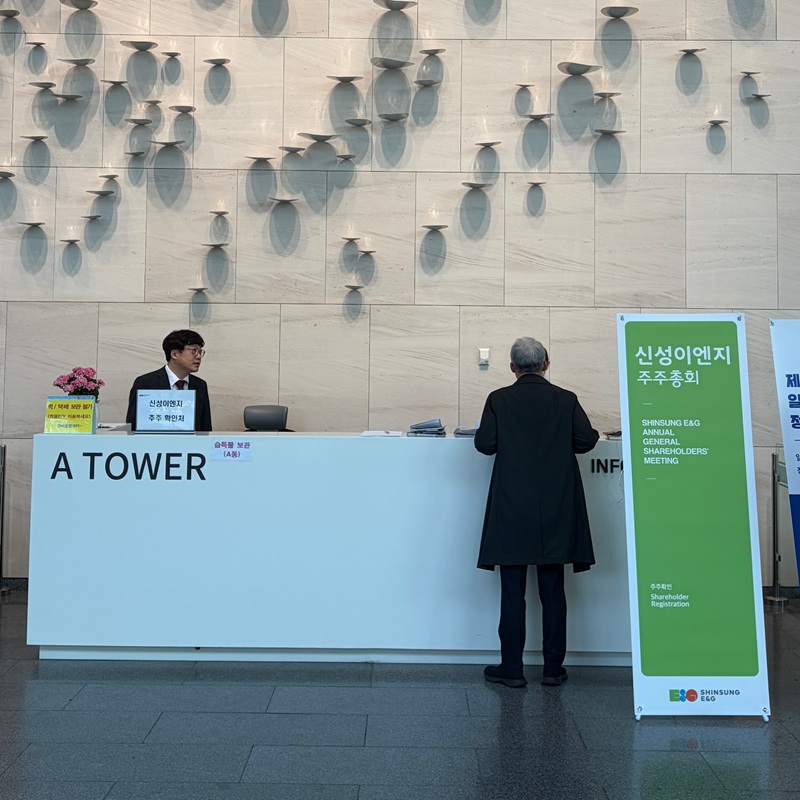 [사진: 신성이엔지가 26일 경기 과천 본사에서 제47기 정기주주총회를 개최하고 있다]