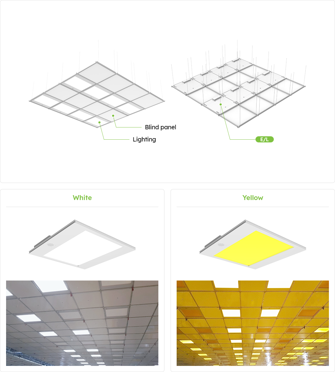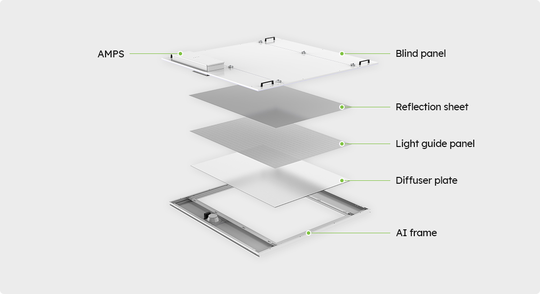 A clean room-specific LED edge-type lighting installed on the ceiling of a clean room