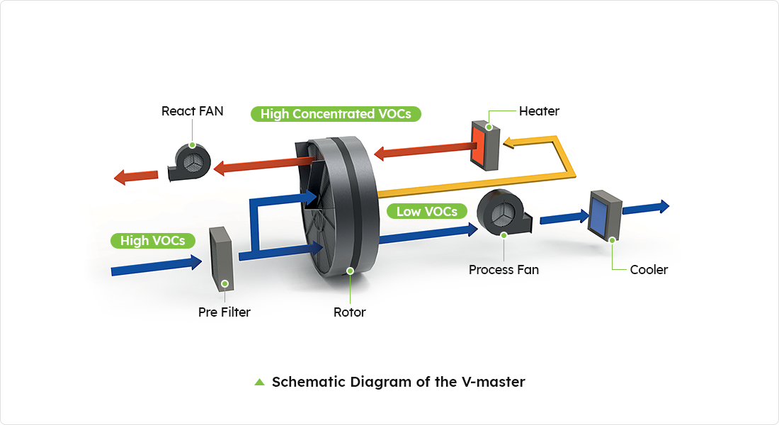 Equipment that removes more than 95% of scattering VOCs, improves the production environment, and protects the health of workers through its first application to a clean room in Korea