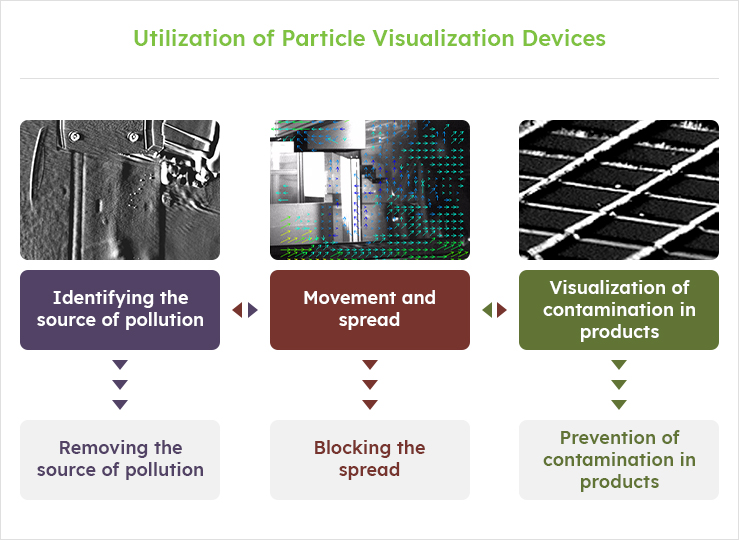 Identifying the causes and intuitively deriving the solutions by visualizing the 0.1um particles (minimum particle size) that may cause defects during production Understanding the generation, movement, and contamination mechanisms of particles by visualizing the particles generated during the actual process