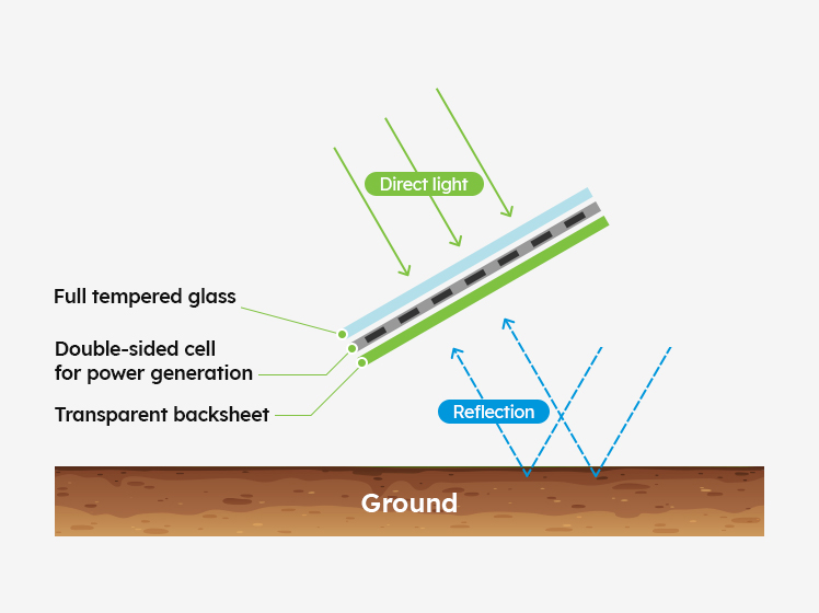 Technology that generates power by utilizing not only direct light (front) but also indirect light (back)
