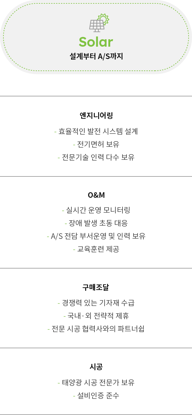 고객의 태양광 발전 사업을 위한 완벽한 One-Stop 서비스 제공