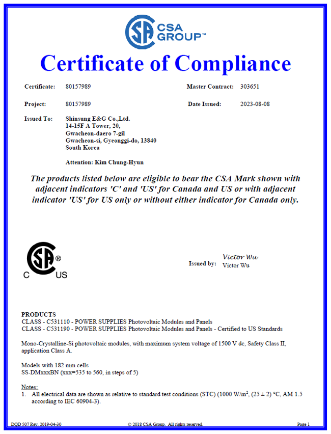 CSA 인증(UL 규격)